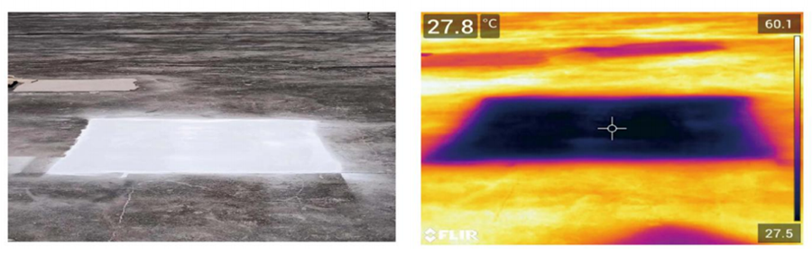 Yuanjingang radiant cooling coatings achieve significant surface cooling by combining high reflectivity and high radiation. The following figure shows the surface temperature change after the radiant cooling coating is applied.